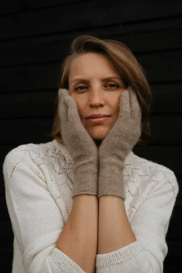Minimal, slim, and warm gloves in smooth stockinette with an anatomical thumb gusset and neat decreases on every finger. The fit is precise and refined — the gloves sit on the hand smoothly and elegantly.