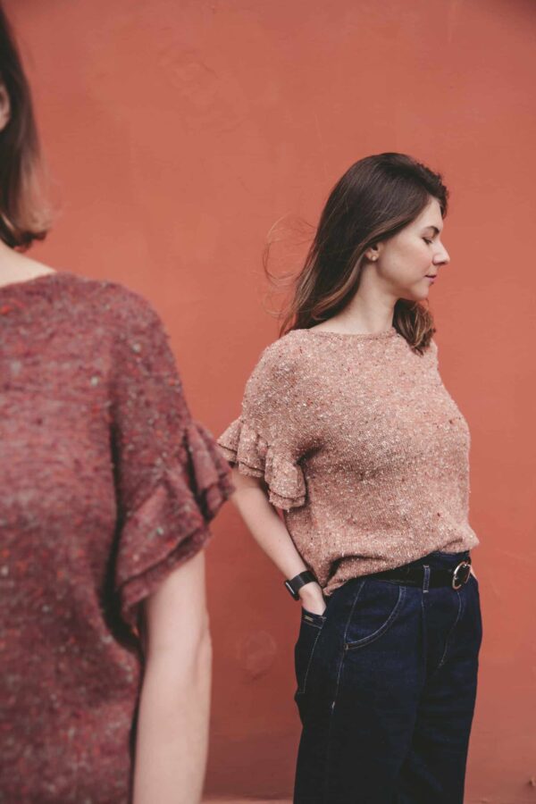 Discover the elegance of handcrafted fashion with the Butterfly T-Shirt pattern from Hollywool yarn store. This exquisite knitting project offers sizes S (42-44), M (44-46), and L (48-50), catering to a range of body types. The final product measurements are thoughtfully designed with bust circumferences of 82-86 cm (S), 88-92 cm (M), and 94-98 cm (L). For a seamless knitting experience, you’ll need circular needles on a 60-80 cm cable. The recommended needle sizes are 2.25 mm (US 1) for the back and front neckline and a slightly larger 0.25 mm for the ruffles. Embark on this creative journey and knit your own stylish Butterfly T-Shirt with Hollywool’s expert guidance.