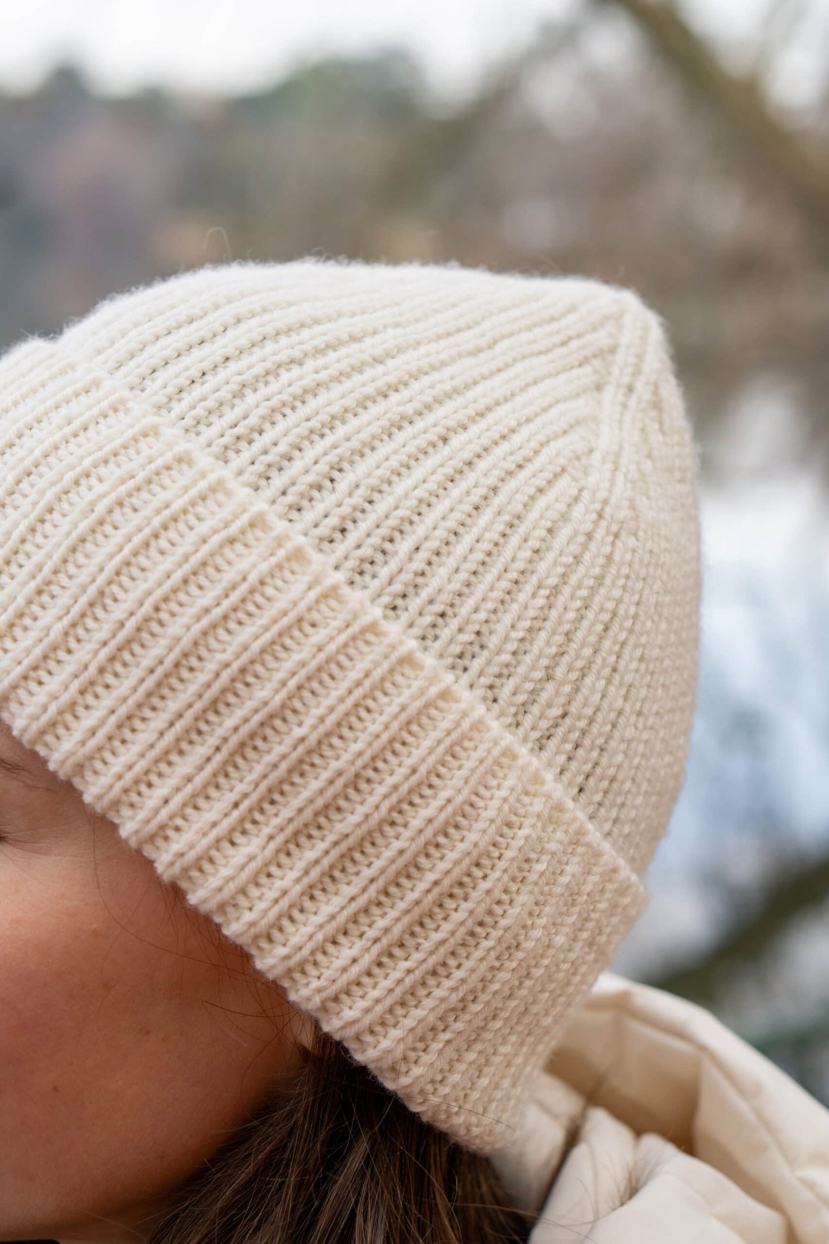 The hat is worked in the round from brim to crown, starting with an Italian cast-on for a polished edge. After a short tubular setup, the body is worked in 1×1 ribbing and finished with clearly structured crown decreases. The pattern includes step-by-step, size-specific instructions and is supported by photo and video tutorials to guide you through the key techniques.